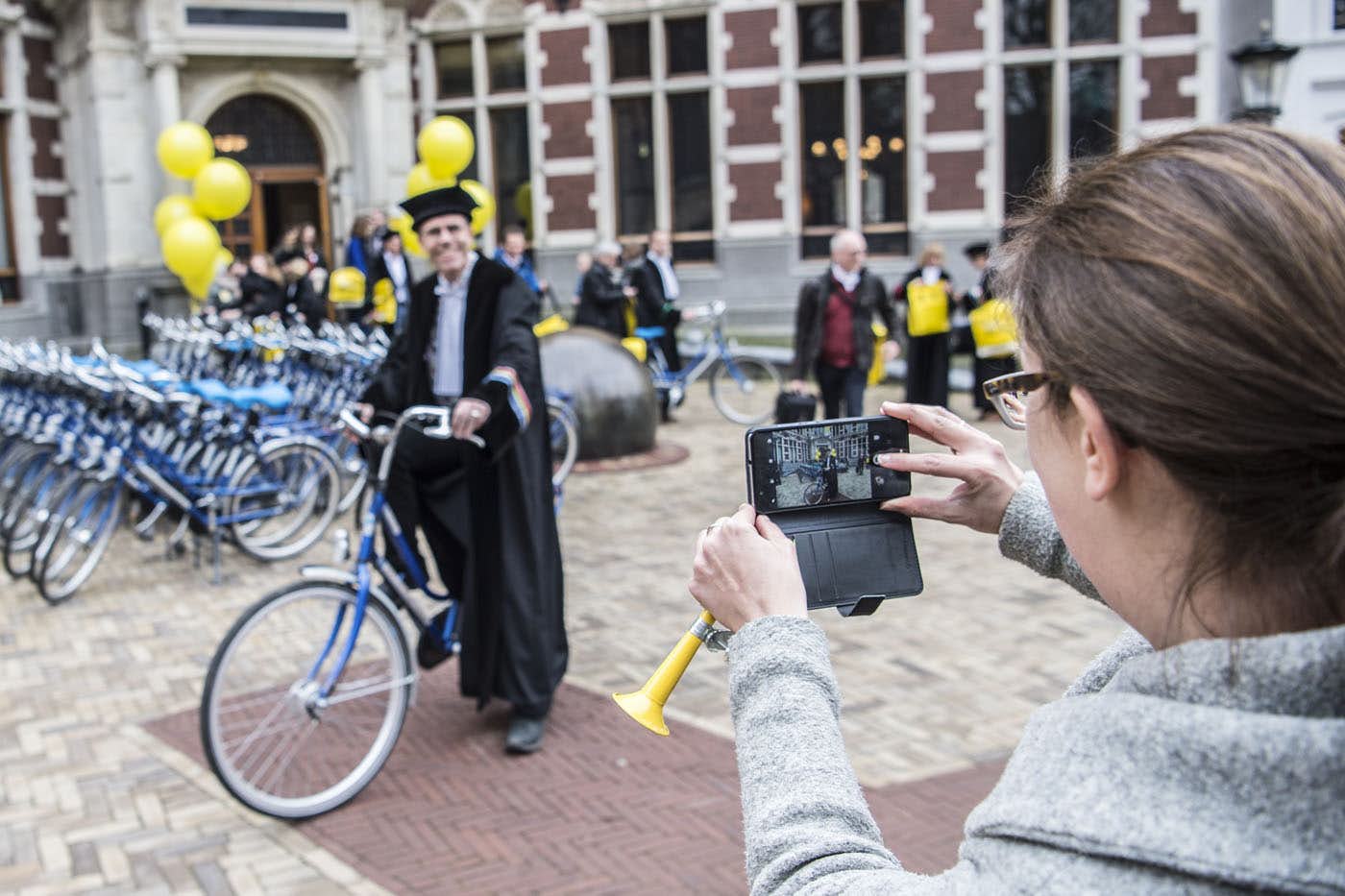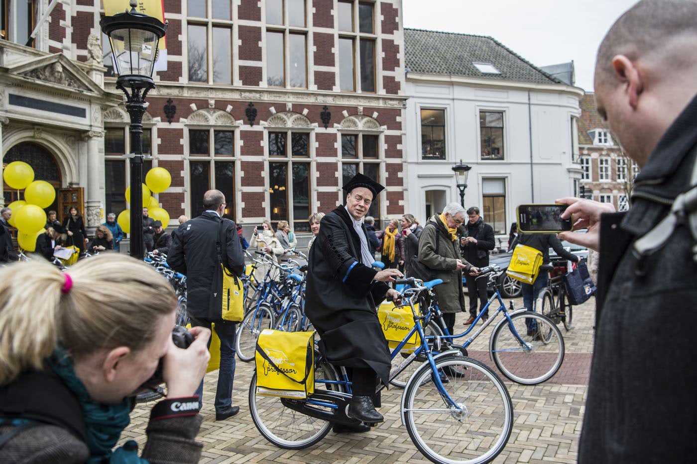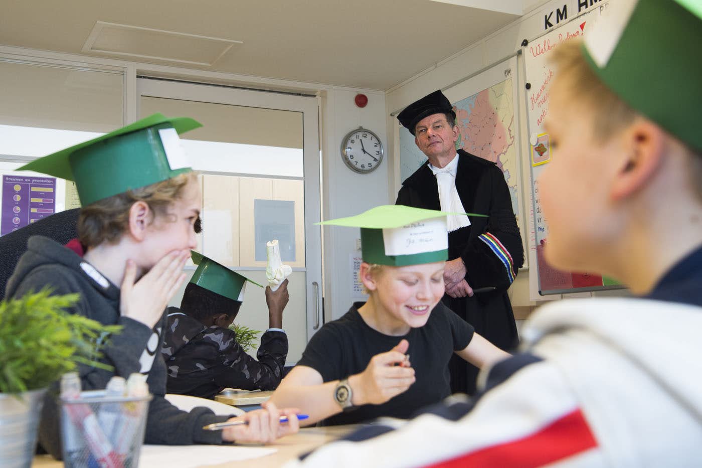 Het begon al een beetje te regenen toen Van Weeren het Academiegebouw aan het Domplein verliet en op zijn fiets stapte. Hij, en ruim 130 collega-professoren, gingen naar verschillende basisscholen toe om een minicollege te geven. De UU over dit initiatief: “Kinderen en professoren hebben een belangrijke eigenschap gemeen: beide groepen zijn heel nieuwsgierig en willen de wereld om zich heen beter begrijpen.”