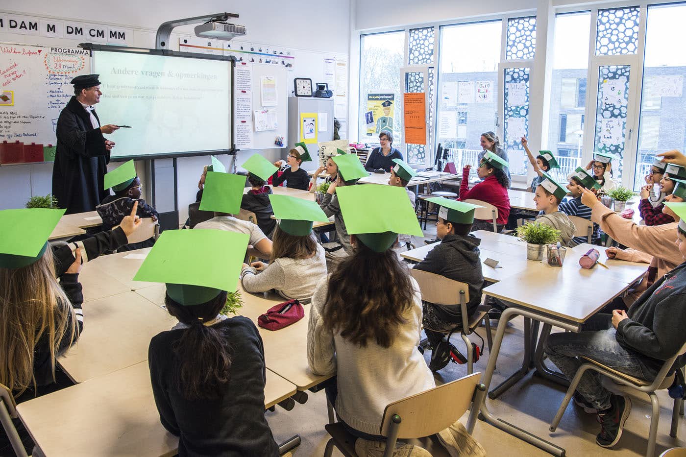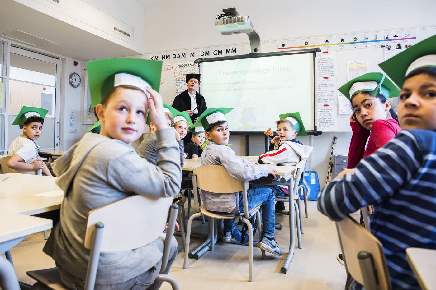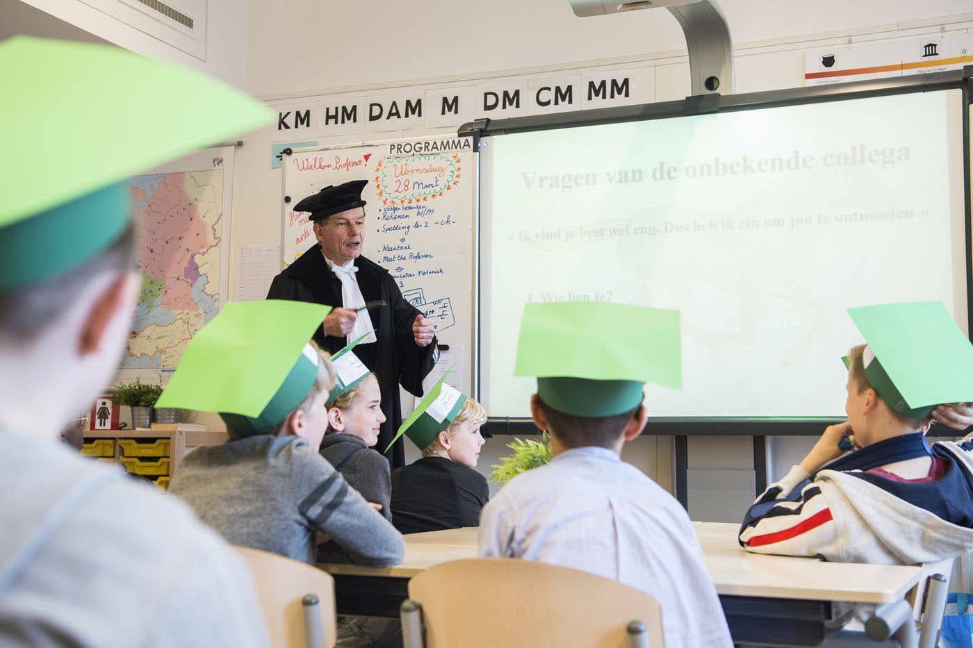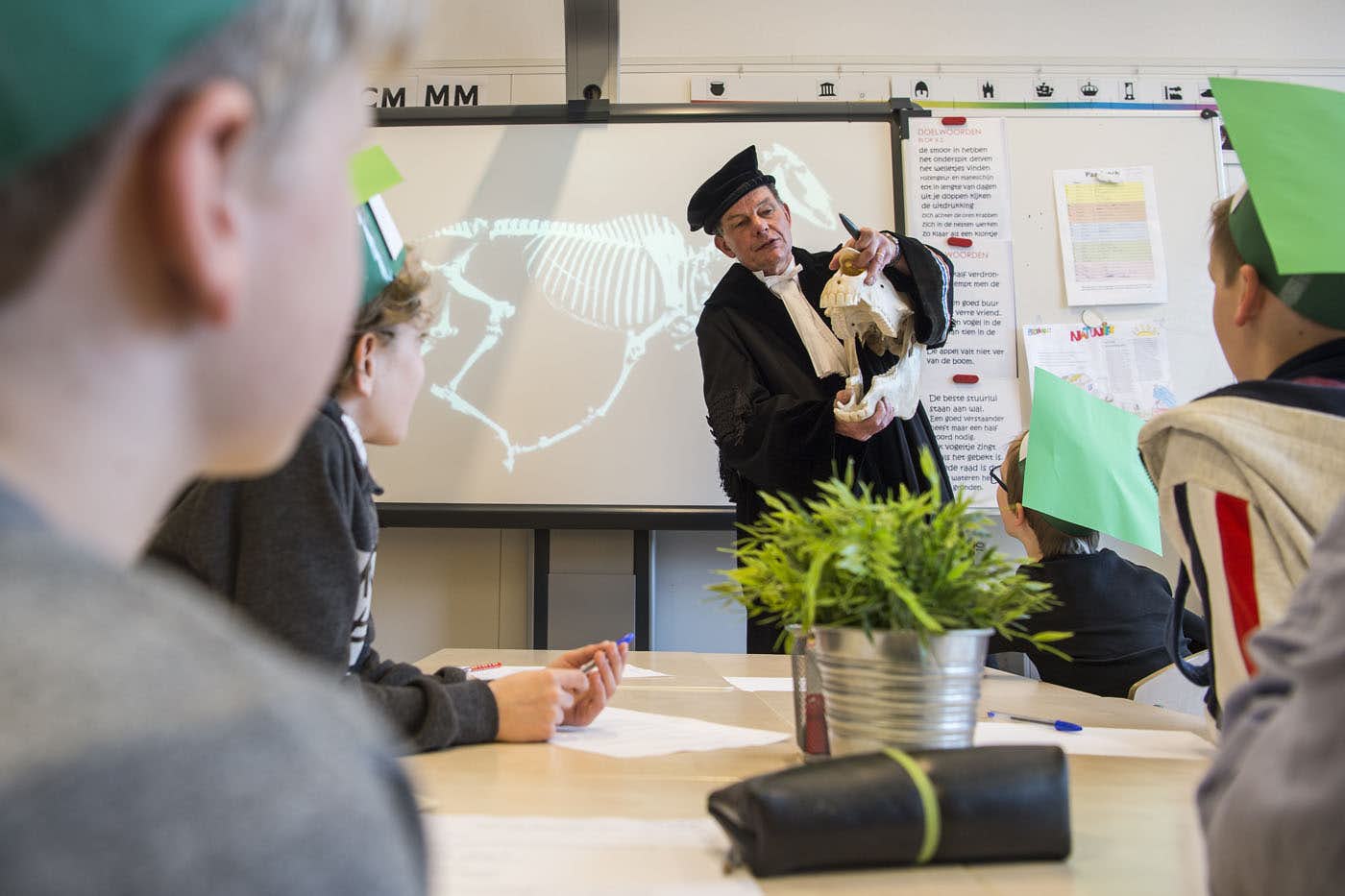 Meer dan 130 professoren zijn vandaag op de fiets gestapt om les te geven op verschillende basisscholen in Utrecht. Het initiatief van de Universiteit Utrecht (UU) werd voor de derde keer georganiseerd. Op de Da Costaschool in Hoograven kwam professor René van Weeren langs, en hij nam een paardenkop mee.