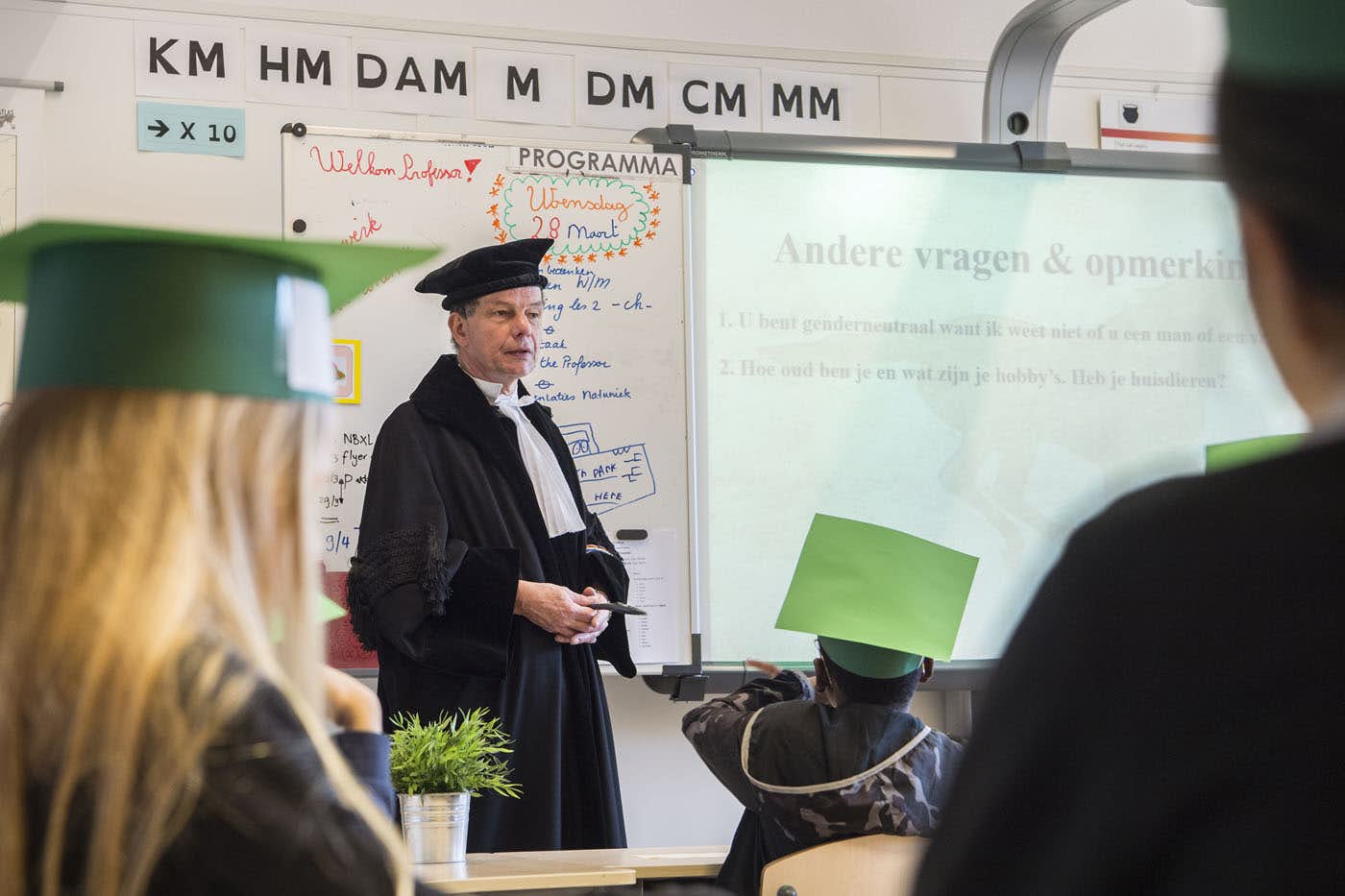 De UU: “De professoren die meedoen aan Meet the Professor vinden het belangrijk om aan kinderen te laten zien wat een onderzoeker doet. Zo willen zij aan een nieuwe generatie kinderen laten zien hoe leuk en belangrijk het is om nieuwsgierig te blijven en te blijven onderzoeken.”