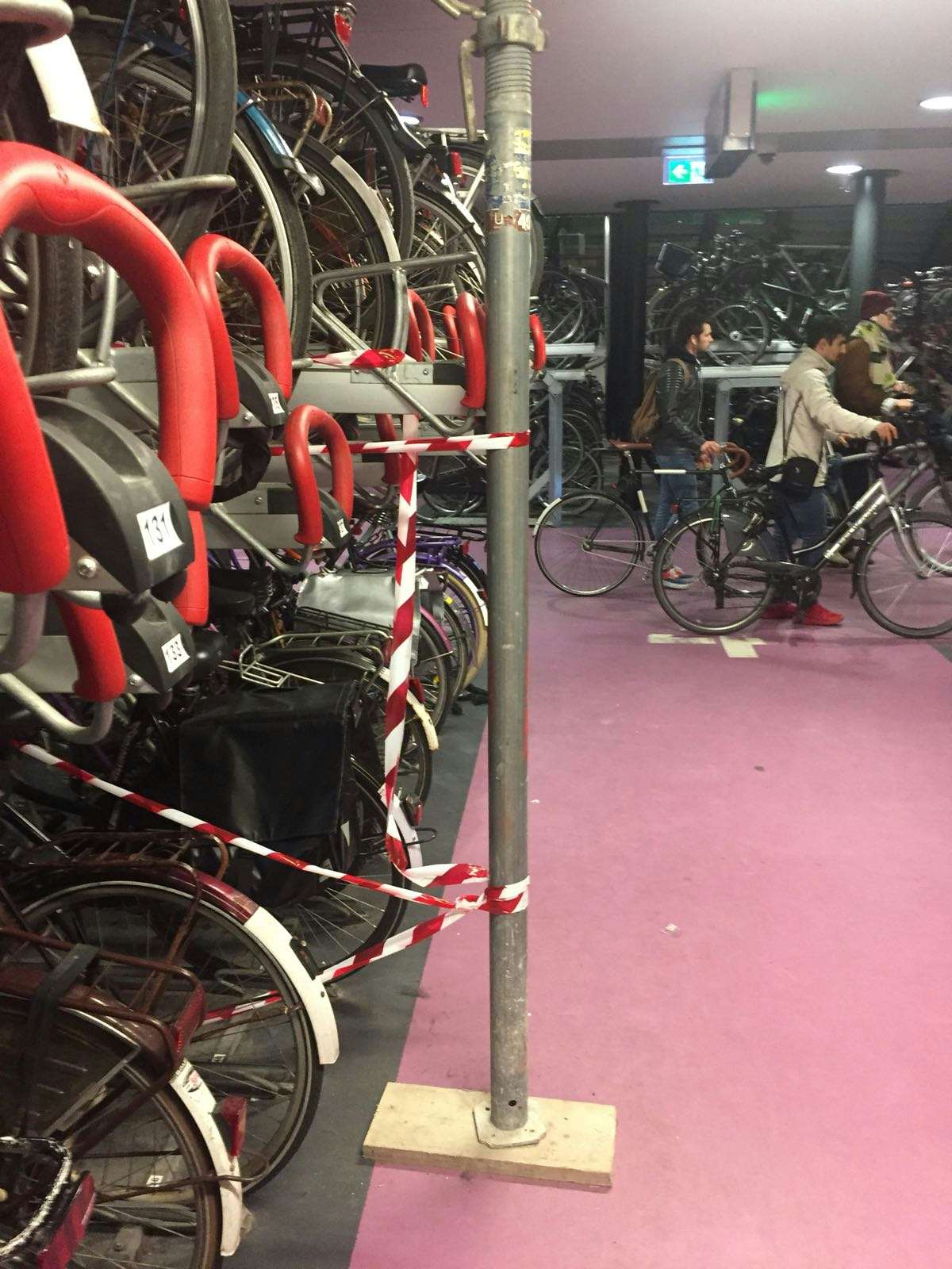 In de fietsenstalling Jaarbeursplein bij het station Utrecht Centraal en het Stadskantoor staan meer dan 15 tijdelijke steunpilaren, zogeheten bouwstempels, omdat er mogelijk iets mis is met de constructie.