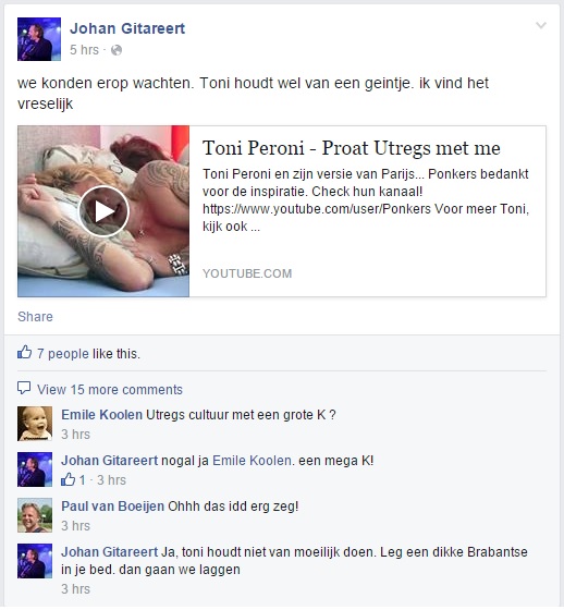 O oeps, voordat ik allemaal verwijten naar mijn hoofd krijg: Nee ik word niet per se blijer van Rimke dan van de dame naast Toni Peroni. Het gaat me niet om blond, donker, klein, groot of wat dan ook. Ben hetero vrouw dus dat boeit me niet zo. Heb gewoon een zwak voor Friesland en de Friese taal door goeie herinneringen aan studietijd, dus vandaar… Grappig al die parodieën.