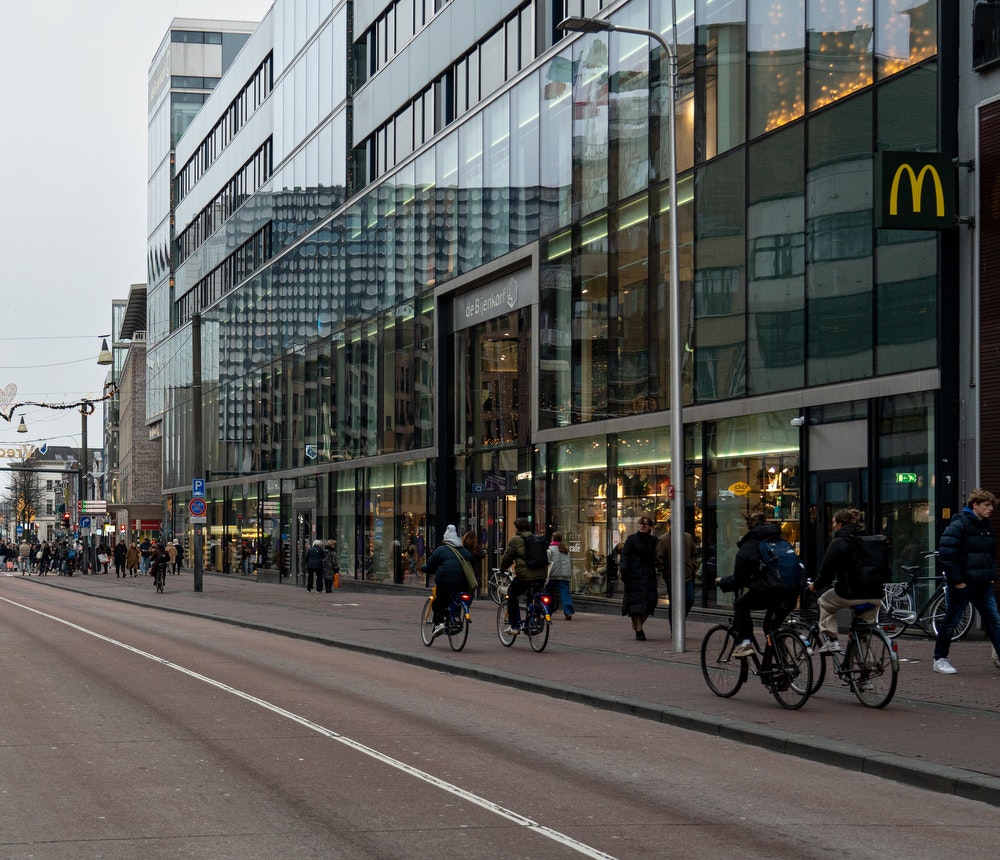 De Lange Viestraat is er nou niet bepaald op vooruit gegaan. Wat een lelijkheid die glazen puien.