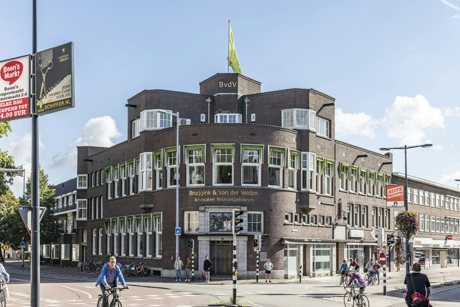 Links staat de slagersvakschool, is nu ook weg, ik gok dat de weg iets verlegd is, na aanleg brug