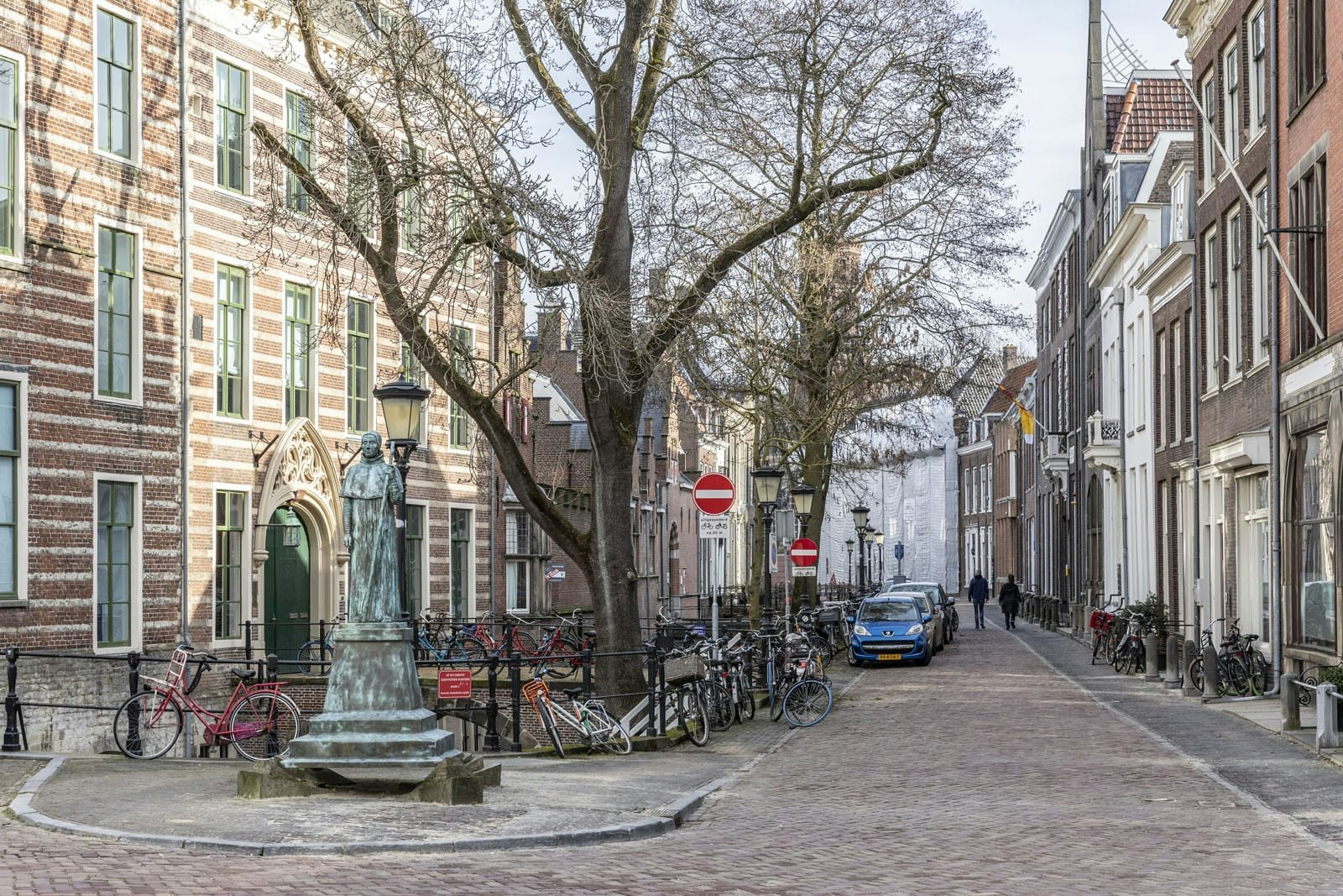 Overigens, wat staat onze Paus Adrianus daar nu mooi. Had een maatje groter mogen zijn en aan dat stukje brugleuning erachter zouden best eens géén fietsen mogen staan.