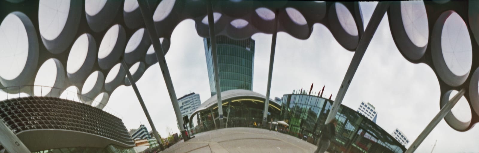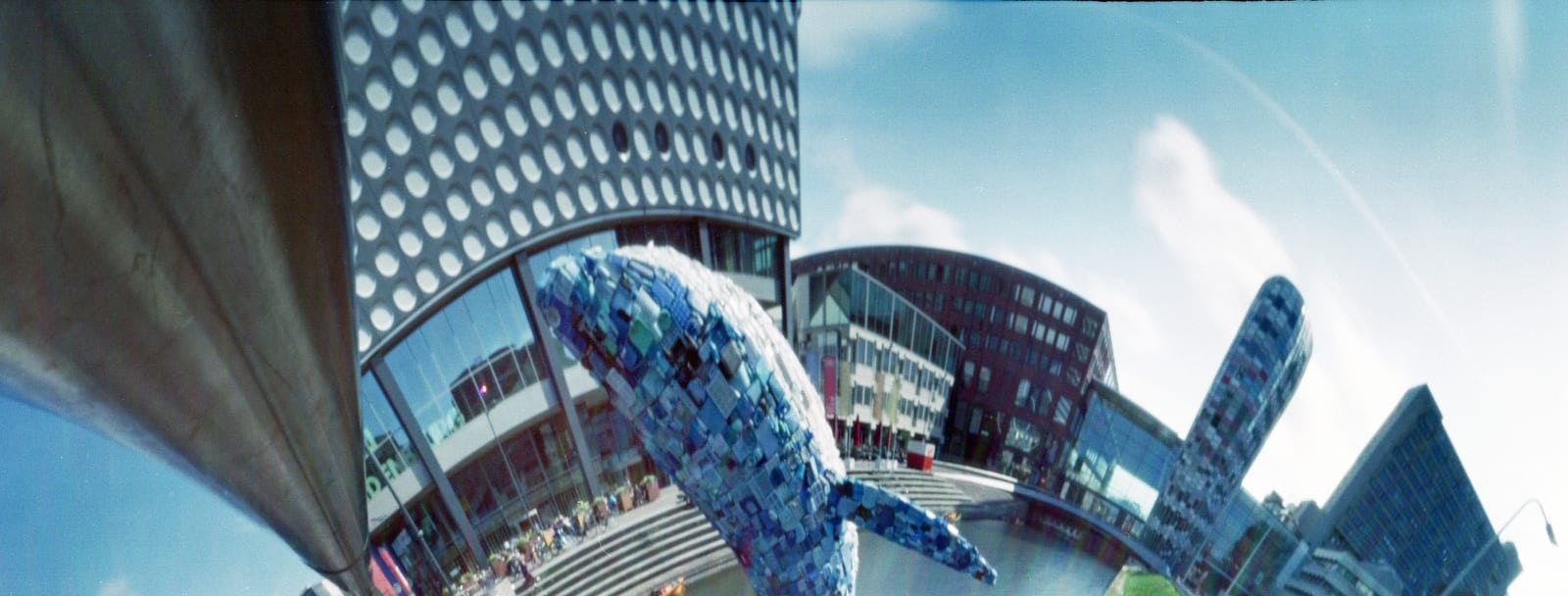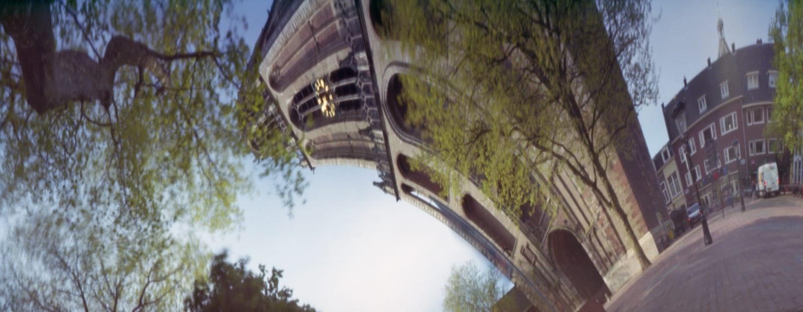 Overstappen op de pinhole-camera vergde dan ook wat oefening. “De eerste filmrolletjes verpestte ik, maar bij de derde zaten al een aantal geweldige beelden.” Inmiddels is Kalkhoven goed getraind in het gebruik van de bijzondere camera. In Utrecht heeft hij al een aantal iconische plekken vastgelegd waaronder de Domtoren, de Walvis die een tijdje voor TivoliVredenburg in het water stond en de universiteitsbibliotheek aan de Drift.