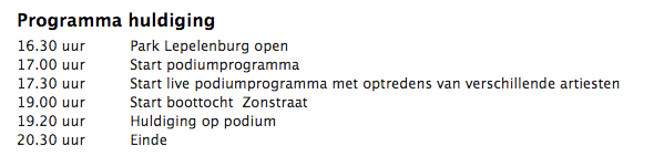 Hierbij nogmaals het programma van vanavond. De huldiging wordt ook live uitgezonden bij de NOS vanaf 18:50 uur.