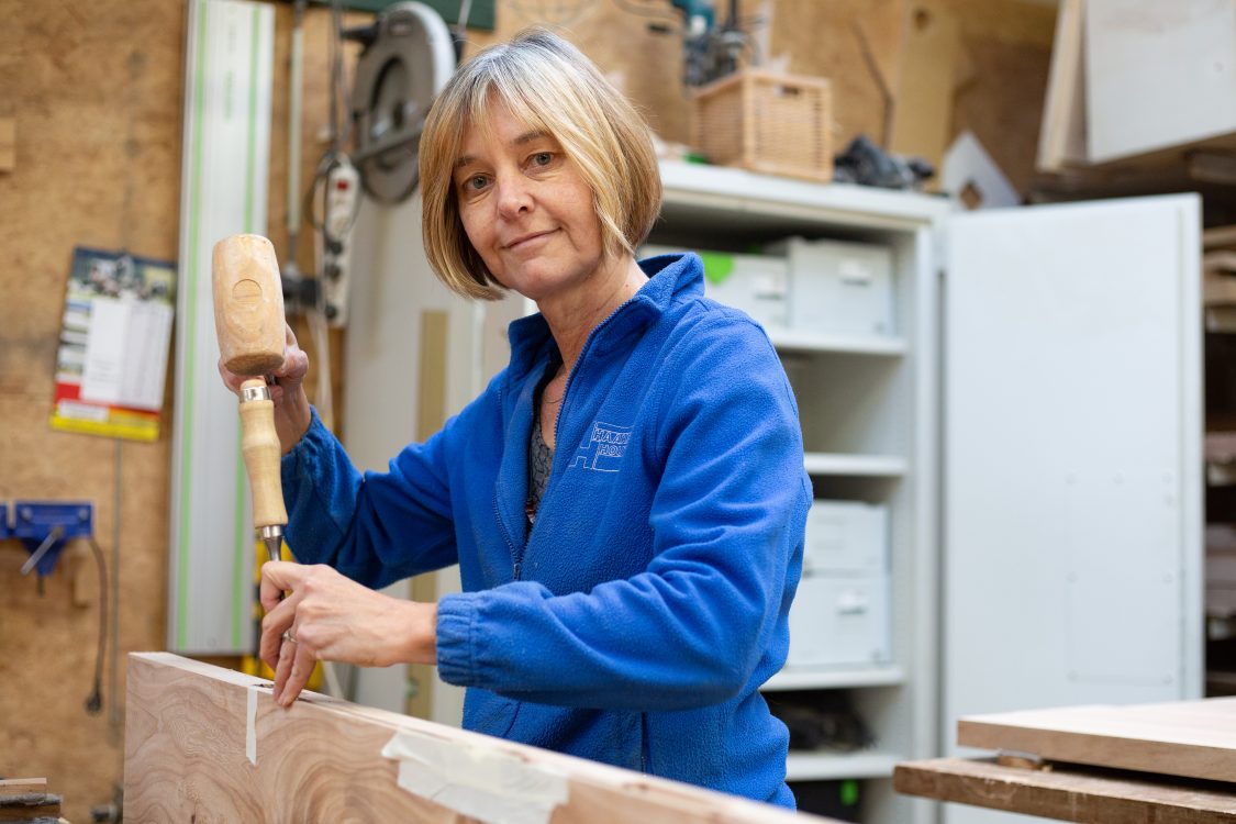 “Ik heb hiervoor in de ontwikkelingssamenwerking gewerkt op het gebied van mensenrechten. Na veel reizen was het tijd voor iets anders. Ik kwam als vrijwilliger bij Stichting Tafelboom terecht. Die stichting verzaagt en droogt hout van stadsbomen. Ik merkte dat ik enorm genoot van het proces. Het hout komt echt als een boomstam binnen. En aan het eind heb je een meubel waarin nog steeds die boom is te herkennen. Dat vind ik ontzettend mooi. Toen dacht ik: dit wil ik doen. Ik ben teruggegaan naar school en heb een deeltijdopleiding gevolgd aan het Hout- en Meubileringscollege. Tegelijkertijd startte ik mijn bedrijf: Haaks Hout.”