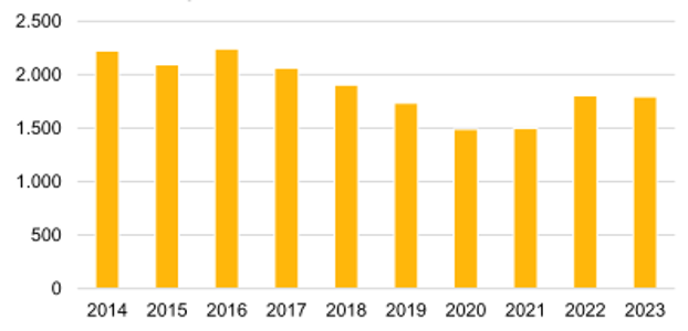 De minste ongelukken deden zich voor in de jaren 2020 en 2021. Een logisch gevolg van de afgenomen verkeersdrukte door de coronamaatregelen. In de jaren voor en na de coronaperiode is het aantal ongevallen vergelijkbaar (1.736 in 2019, 1.808 in 2022 en 1.796 in 2023). De daling van het aantal verkeersongevallen lijkt hiermee te stagneren.