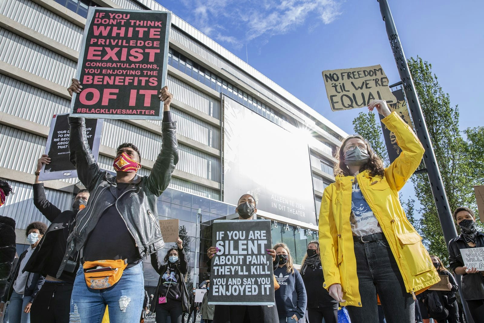Op het Jaarbeursplein kwamen honderden mensen samen voor een Black Lives Matter-demonstratie. De gewelddadige dood van George Floyd zorgde voor een golf van protesten wereldwijd.