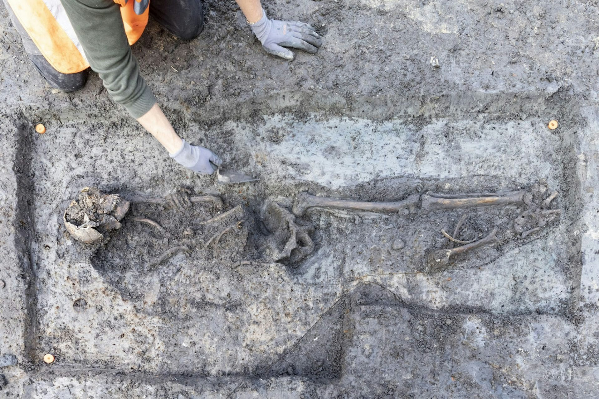 Een ruim 300 jaar oud skelet werd gevonden bij werkzaamheden aan de Oudwijkerdwarsstraat. Een bijzondere vondst, volgens archeoloog Jeroen van der Kamp.