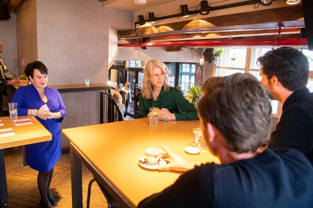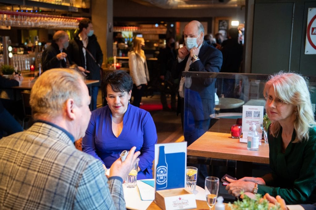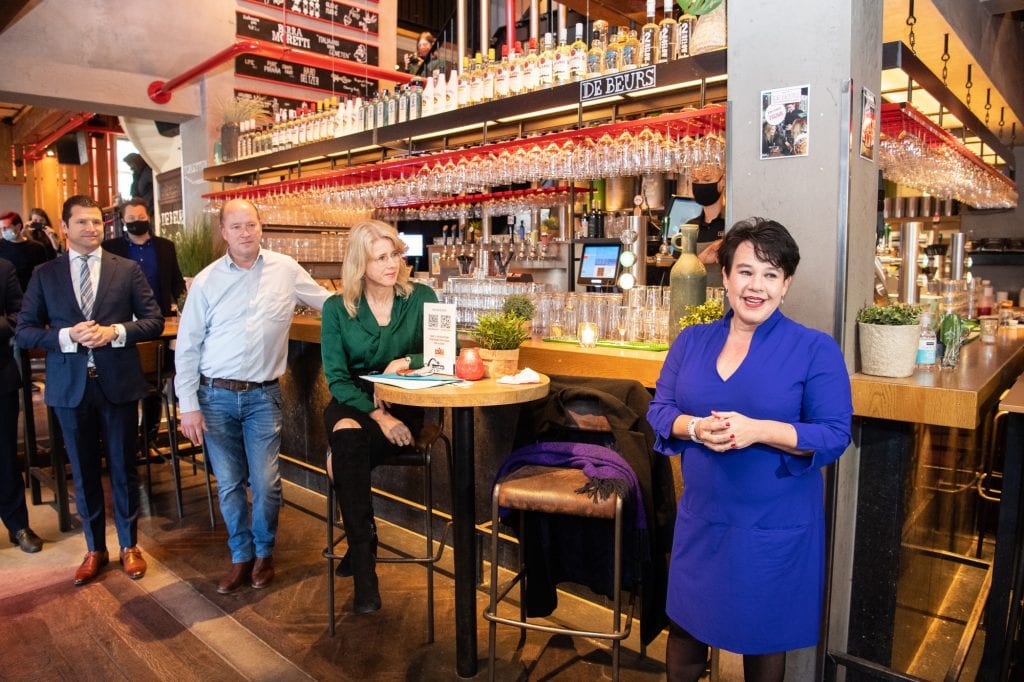 “Het voelt als een feestje, maar het is tegelijkertijd bloedserieus wat we hier doen, namelijk kijken onder welke voorwaarden je op een veilige manier in cafés kun zitten”, legt staatssecretaris Mona Keijzer uit.