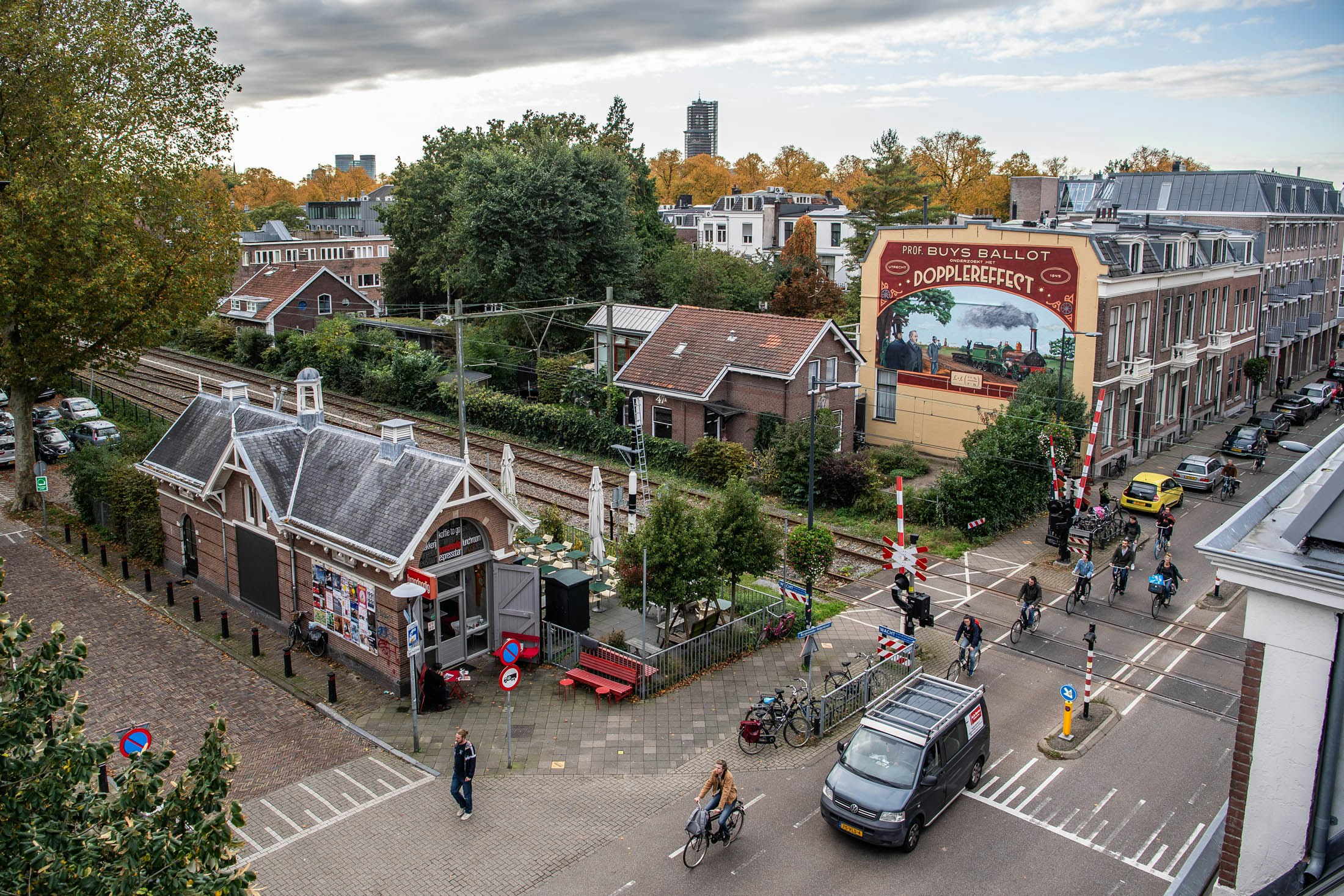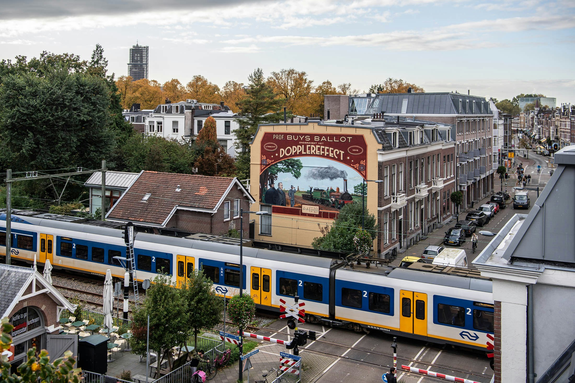 Doppler had in 1842 dit effect al voorspeld, maar in die tijd waren er nog geen voertuigen die snel genoeg reden om dit experimenteel te kunnen aantonen. Toen enkele jaren later de gloednieuwe spoorlijn tussen Utrecht en Maarssen werd geopend, zag Buys Ballot zijn kans schoon: hij leende een trein, zette koperblazers op een open wagon en liet waarnemers langs de spoorlijn het verschil in toonhoogte noteren. Dit tafereel is nu te zien op een grote gevelschildering op de Burgemeester Reigerstraat.