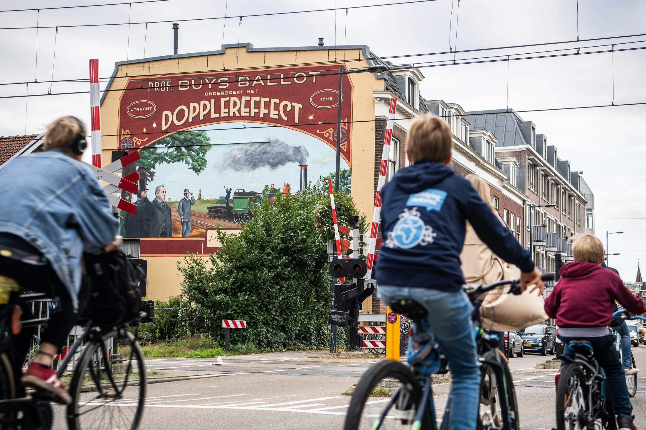 Een nieuwe serie muurschilderingen in Utrecht gaat baanbrekende ontdekkingen tonen. Zaterdag heeft burgemeester Jan van Zanen het eerste werk, in de Burgemeester Reigerstraat, onthuld. De schildering is gemaakt door het bekende collectief De Strakke Hand en toont Buys Ballot. Hij was hoogleraar in Utrecht en toonde in 1845 als allereerste het dopplereffect aan.