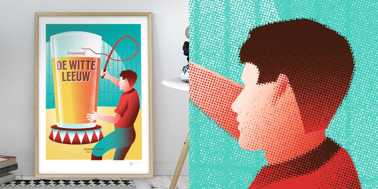De affiches zijn geen reproducties, maar originele illustraties gemaakt door Hans. “Voorafgaand aan het ontwerpen verdiep ik mij in de geschiedenis van de brouwerij. Ik laat ik me inspireren door een etiket, bierviltje of soms alleen door de naam. De affiches hebben een hedendaagse uitstraling, maar ik maak ze met respect voor het verleden. Zo gebruik ik een beperkt aantal kleuren. Net als in het meeste drukwerk uit het begin van de vorige eeuw, waar elke extra kleur extra kosten betekende. Én maak ik gebruik van grove rasters. Ook een kenmerk van veel ouder drukwerk.”