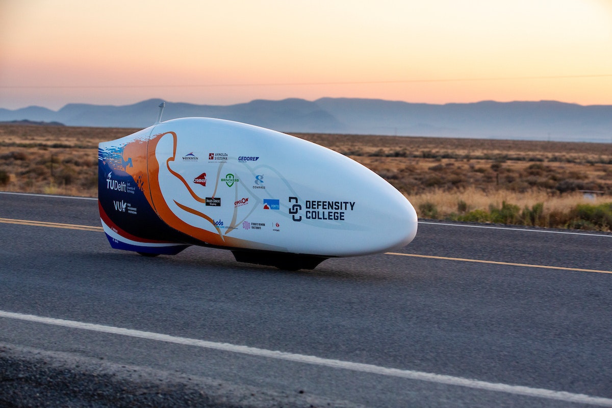 De wedstrijd zelf werd gefietst in de woestijn in Nevada. Daar ligt een lange rechte weg met glad asfalt. “In Nederland hebben we getraind op een vliegbasis, maar die was maar twee kilometer lang. Daar bereikten we snelheden tot 75 kilometer per uur. In de woestijn in de VS ligt 10 kilometer asfalt. En door de hoogte van 1400 meter is er ook minder weerstand.”