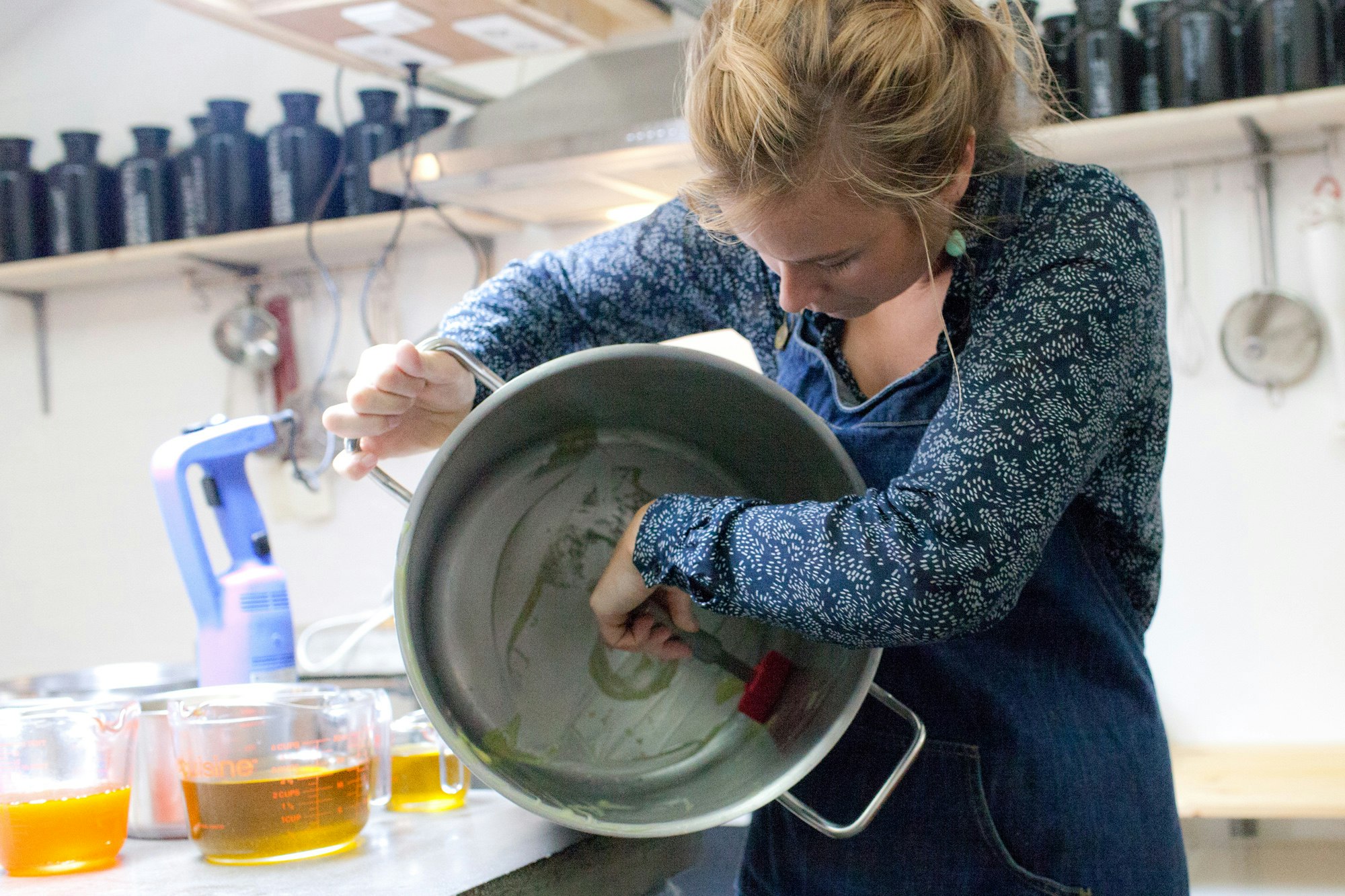 Al ruim tien jaar maakt Van Zonneveld biologische en ambachtelijke zeep. Bij een Canadees familiebedrijf leerde zij op een traditionele manier, in een grote pan met een houten pollepel het produceren van natuurlijke zeep.