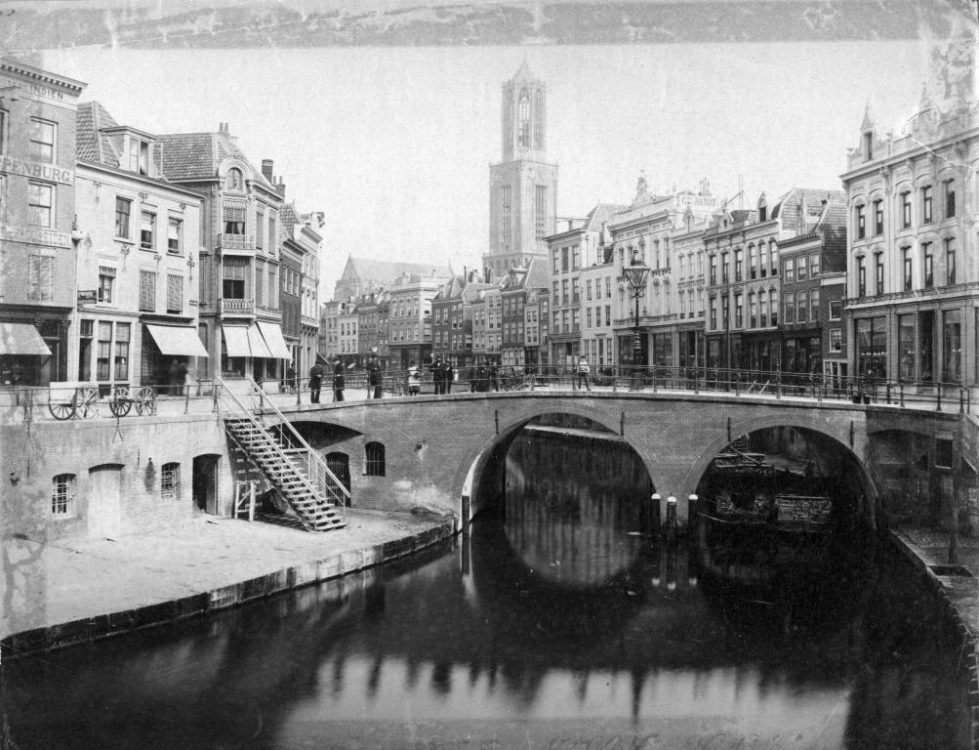 Utrecht verandert geleidelijk door de jaren heen. Soms gaat de verandering sneller; in het stationsgebied is het straatbeeld dagelijks weer anders. Sommige plekken lijken weer heel weinig te veranderen. In deze rubriek kijken wij naar het verleden en heden. Door locaties op oude foto’s van Het Utrechts Archief na te fotograferen is goed te zien hoe sommige plekken in de stad zich ontwikkelen. Vandaag de twaalfde serie foto’s, met locaties aan de Oudegracht.