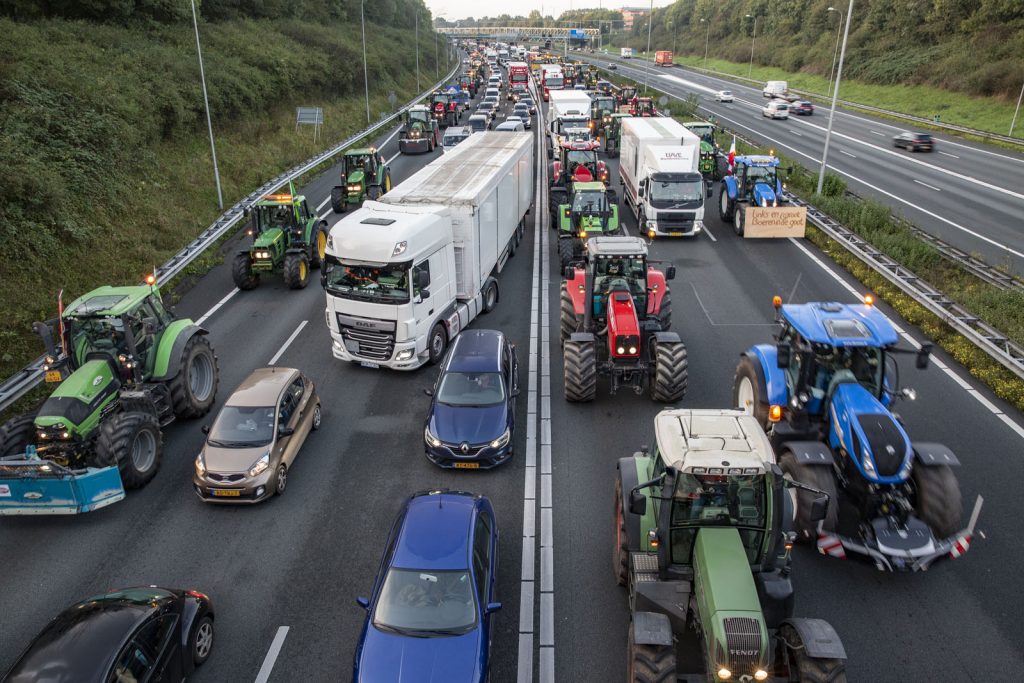 Het boerenprotest van woensdagochtend levert veel vertraging op voor overig verkeer. Rijkswaterstaat waarschuwde dinsdag al voor flinke vertraging, maar het protest is groter dan gedacht.