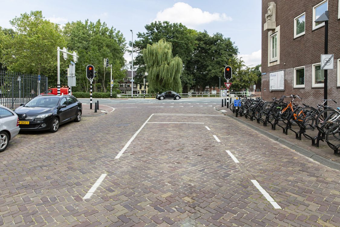 Puzzelen met pijl op de weg bij de Catharijnesingel