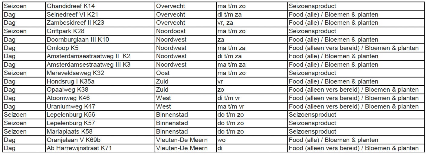 “Vijf vergunningen gaan naar bestaande standplaatshouders, die eerder een plek in Utrecht hadden, en vijf vergunningen gaan naar nieuwe ondernemers. Na deze ronde zijn nog 18 kavels beschikbaar.” Op de afbeelding hieronder is te zien om welke kavels het gaat.