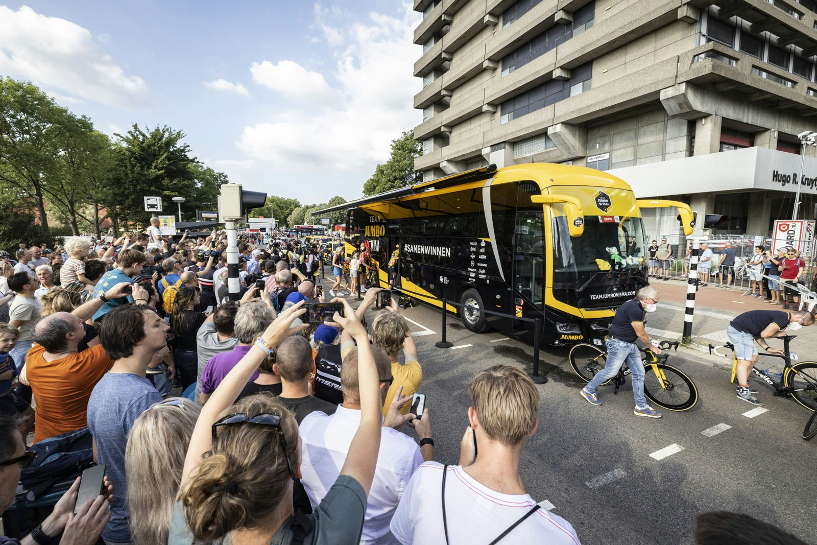 De fans die massaal waren uitgerukt stonden hard te juichen toen de renners de finish passeerden. Daarna verspreidde het publiek zich: een deel trok naar de bus van Jumbo-Visma om hun favoriete renners toe te juichen, anderen verzamelden zich voor het huldigingspodium.