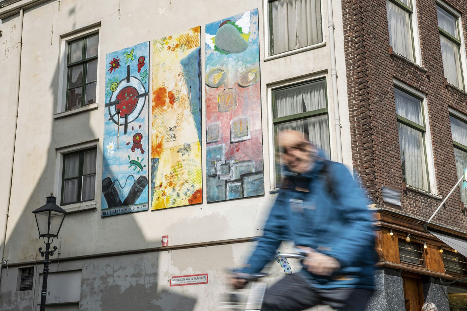 1. Kunstwerk op de hoek van de Oudegracht en de Lange Smeestraat