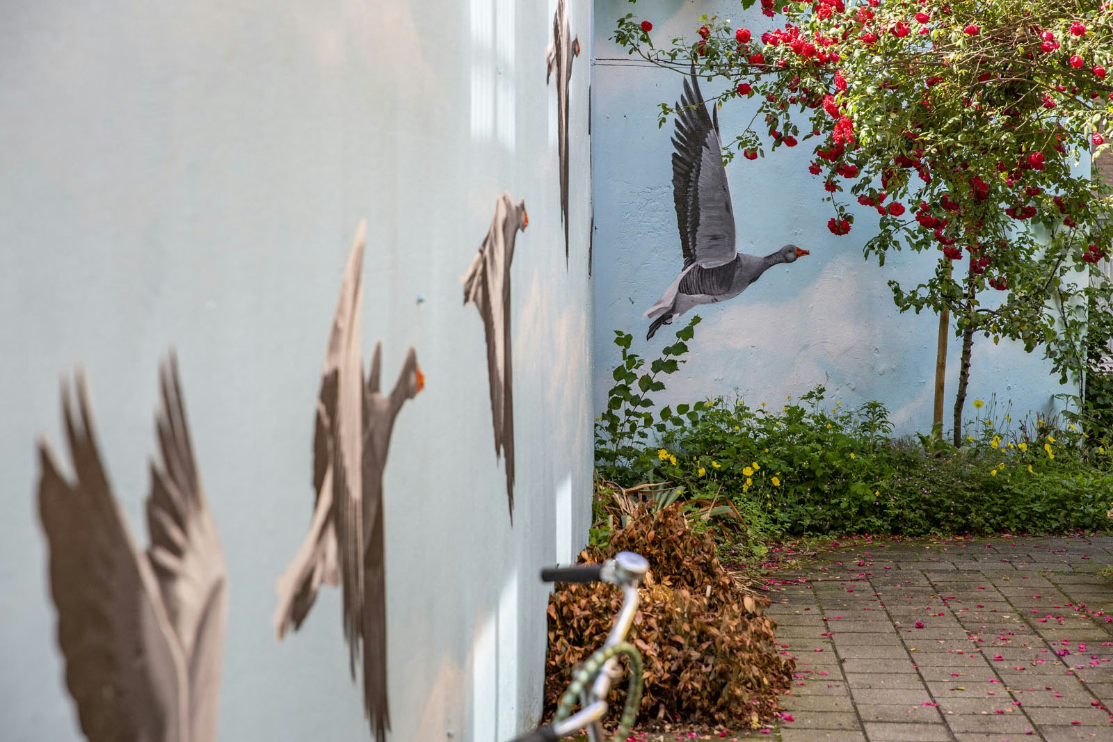 - Muurschildering aan op een pand aan de Adelaarstraat