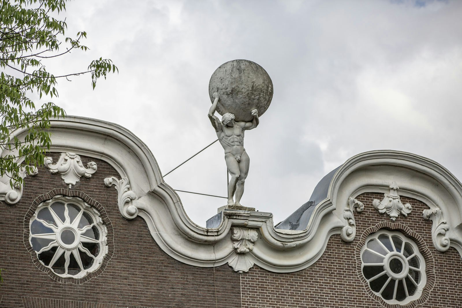 - Standbeeld van Herakles op het dak van twee woningen aan de Nieuwegracht