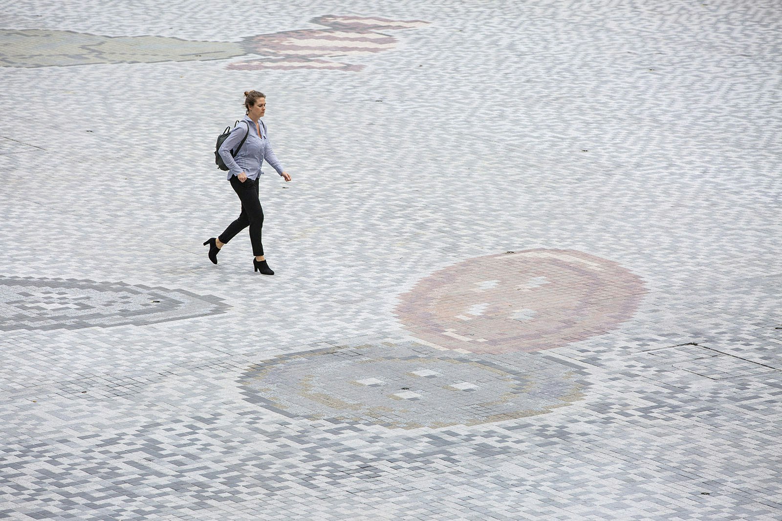 Reageren(1) “Het-plein-met-de-lelijke-onherkenbare-vlekken-tussen-de-mooie-uit-het-hele-grijstinten-spectrum-bestaande-steentjes” Vredenburg.