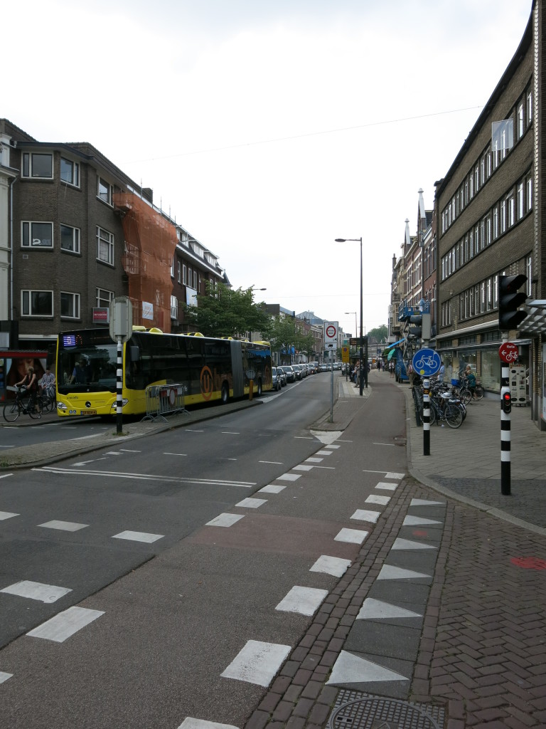 Luie versslaggever: Ook de Biltstraat, Berekuil, Kardinaal de Jongweg, Kardinaal Alfrinkplein zaten vast. Kennelijk waren op alle overwegen van de Oosterspoorbaan de spoorbomen naar beneden.
