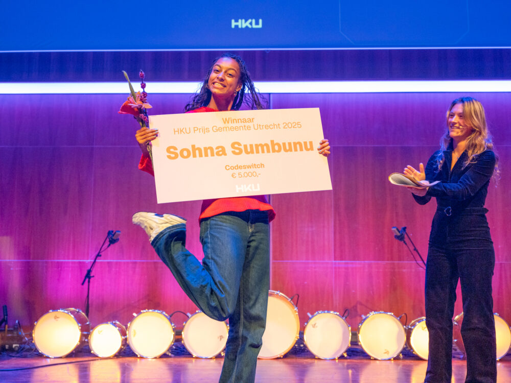 Wethouder Eva Oosters reikte de HKU Prijs Gemeente Utrecht uit aan Sohna Sumbunu. Zij maakte een documentaire, Codeswitch, waarin ze onderzoekt hoe zij en haar vriendinnen omgaan met hun huidskleur.