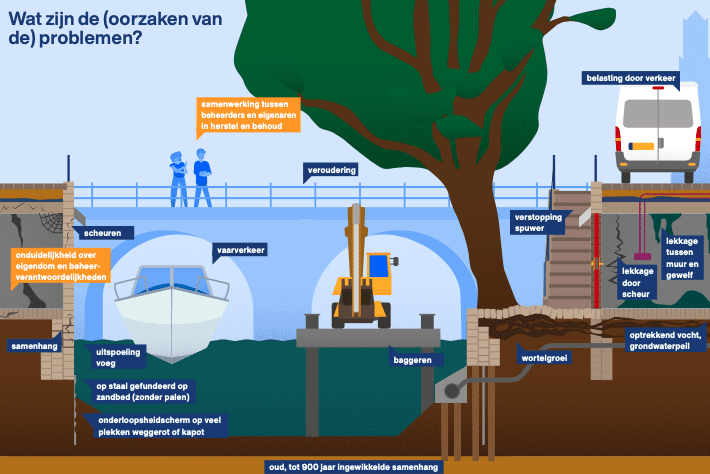 Ook de eigendomsverhoudingen in het gebied zorgen voor uitdagingen. De wal- en kluismuren zijn van de gemeente Utrecht, maar de werfkelders en grachtenpanden zijn van bedrijven en particulieren. Die partijen zijn dus afhankelijk van elkaar, maar de samenwerking verloopt verre van vlekkeloos.