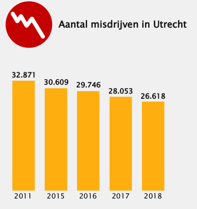 “De totale criminaliteit in Utrecht is in 2018 gedaald, dat blijkt uit het Veiligheidsbeeld van de gemeente.”