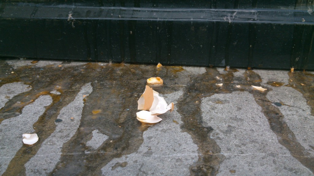 Dat was voor de medewerkers aanleiding om het stadhuis met eieren te bekogelen. Toen de politie arriveerde, waren de actievoerders al gevlogen.