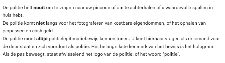 Meerdere wijkagenten waarschuwen bewoners nu en geven tips om te voorkomen dat er meer slachtoffers vallen. “We roepen ook op om onderstaande preventietips te delen met ouders, grootouders of andere mensen waarvan u weet dat ze kwetsbaar(der) kunnen zijn voor deze criminelen.”