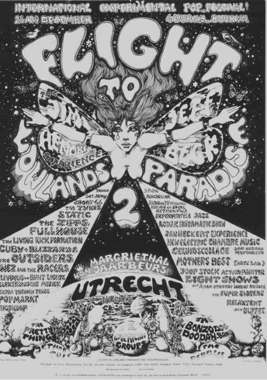 Vandaag start in Biddinghuizen de 20ste editie van het Lowlands festival. Reden voor een feestje en voor véél media-aandacht. Wat daarbij nauwelijks aan bod komt is dat het festival in 1967 al voor het eerst werd gehouden in Utrecht. Het experimentele karakter van destijds is ook in het huidige festival nog steeds terug te vinden.