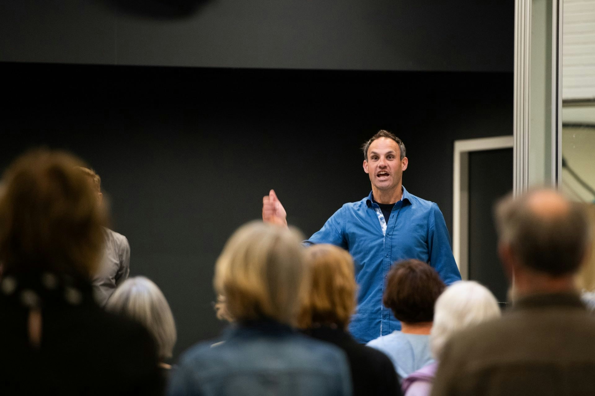 Zodra de stemmen zijn opgewarmd, gaat Vogel verder met het oefenen van de operastukken. Na een jaar repeteren zitten de tekst en melodie er al goed in bij het koor. Toch kan de voordracht nog bijgeschaafd worden. “Het moet straks overal in de Grote Zaal van TivoliVredenburg te horen zijn”, herinnert Vogel de koorleden. Jeroen Lopes Cardozo, de regisseur van stadsopera Trijn, neemt het moment om het koor een aanwijzing te geven. “Nu kan je het publiek verrassen. Die verrassing is belangrijk: Je krijgt publiek dat aandachtig naar je kijkt en dát wil je.” De daaropvolgende ‘hulde, hulde, driewerf hulde’ is luider, zuiverder en krachtiger dan die daarvoor.