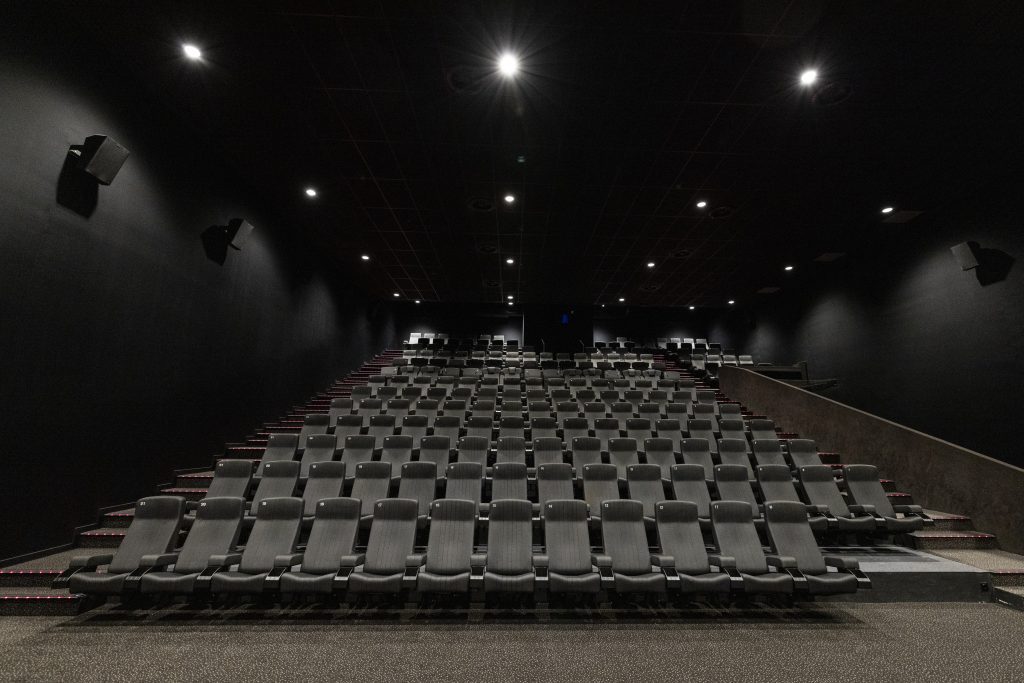 Naast goede techniek, moet ook de filmzaal zorgen voor een maximale filmbeleving. Afgezien van het witte doek en de rode lichtjes op de vloer en traptreden, heeft de hele zaal een donkergrijze kleur. Kan je de film daardoor dan beter bekijken? Van de Ruit: “We doen er alles aan om de beleving voor de kijker te optimaliseren. Daar hoort dus bij dat we de hele zaal een donkere kleur geven. Het is gebleken dat dat een beter beeld geeft. Sommige oudere bioscopen hebben nog wel een andere kleur muren, of lichtjes aan. Daar hebben veel mensen toch last van tijdens de film.”