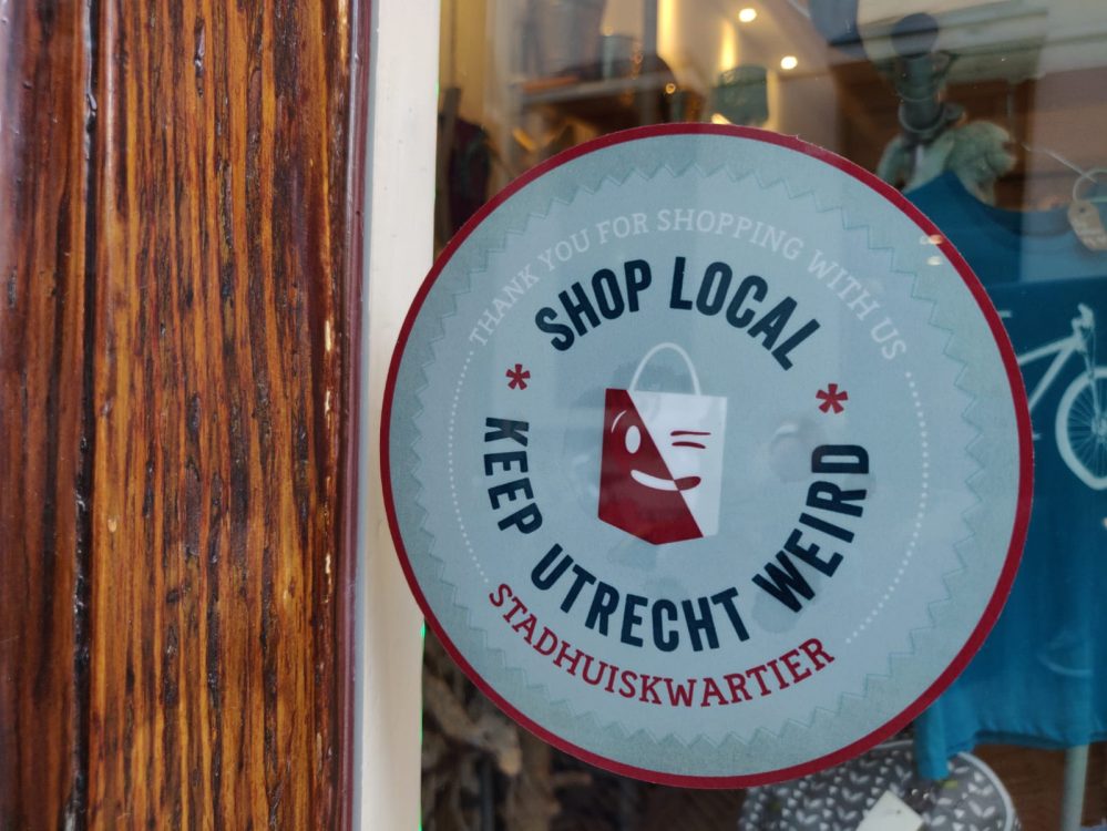 Oh, dit sticker is voor toeristen. Staat duidelijk te lezen in de 1e alinea: “We willen bewustwording creëren onder de bezoekers van Utrecht, zodat zij weten dat ze een lokale retailer ondersteunen, zodra ze bij de winkel naar binnen lopen”