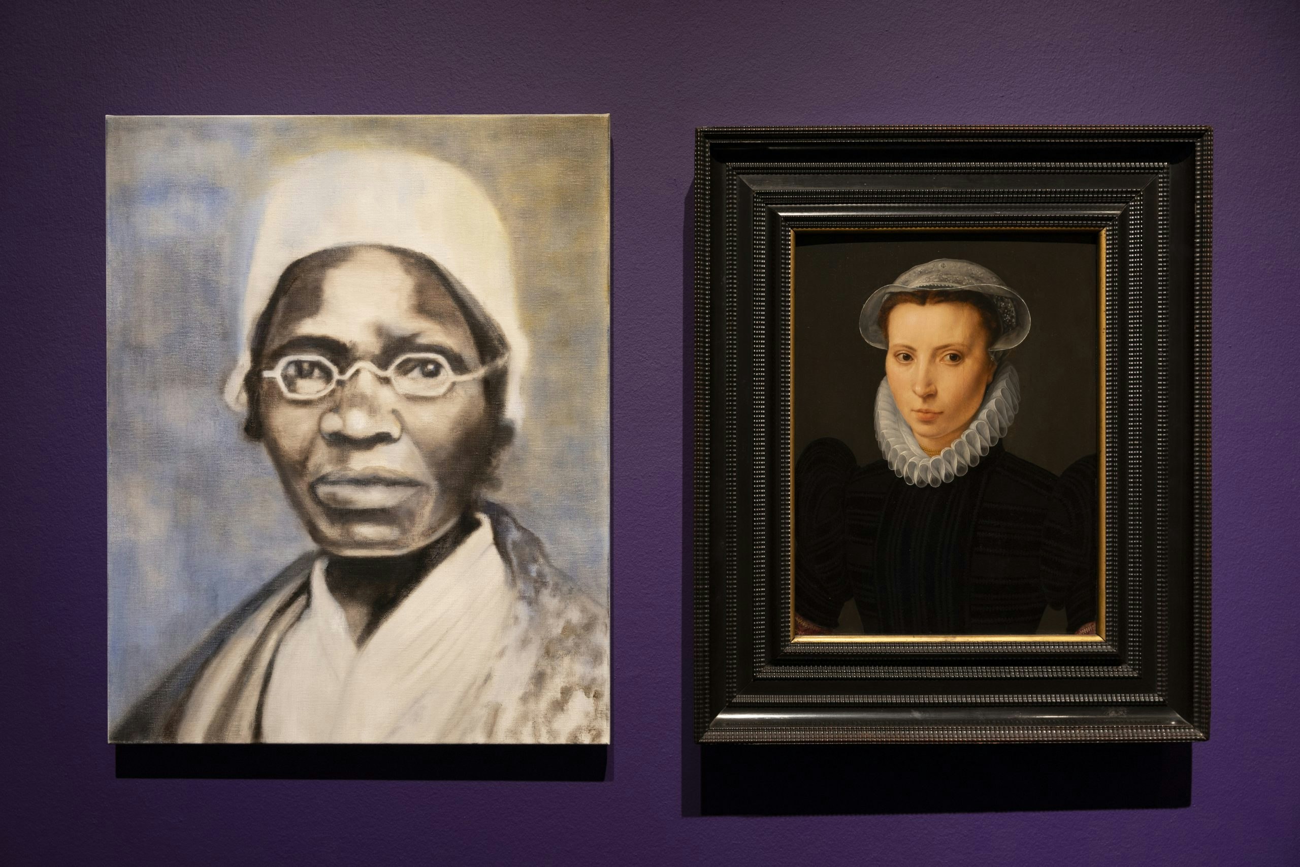 Tussen deze werken is ook het schilderij te vinden dat Iris Kensmil in 2018 van Sojourner Truth maakte. “Op de portretten van Van Scorel zijn voornamelijk witte mannen te zien. Kunstenaars als Iris Kensmil en Steve McQueen geven hedendaagse reacties op deze koloniale beeldgeschiedenis”, vindt het museum.