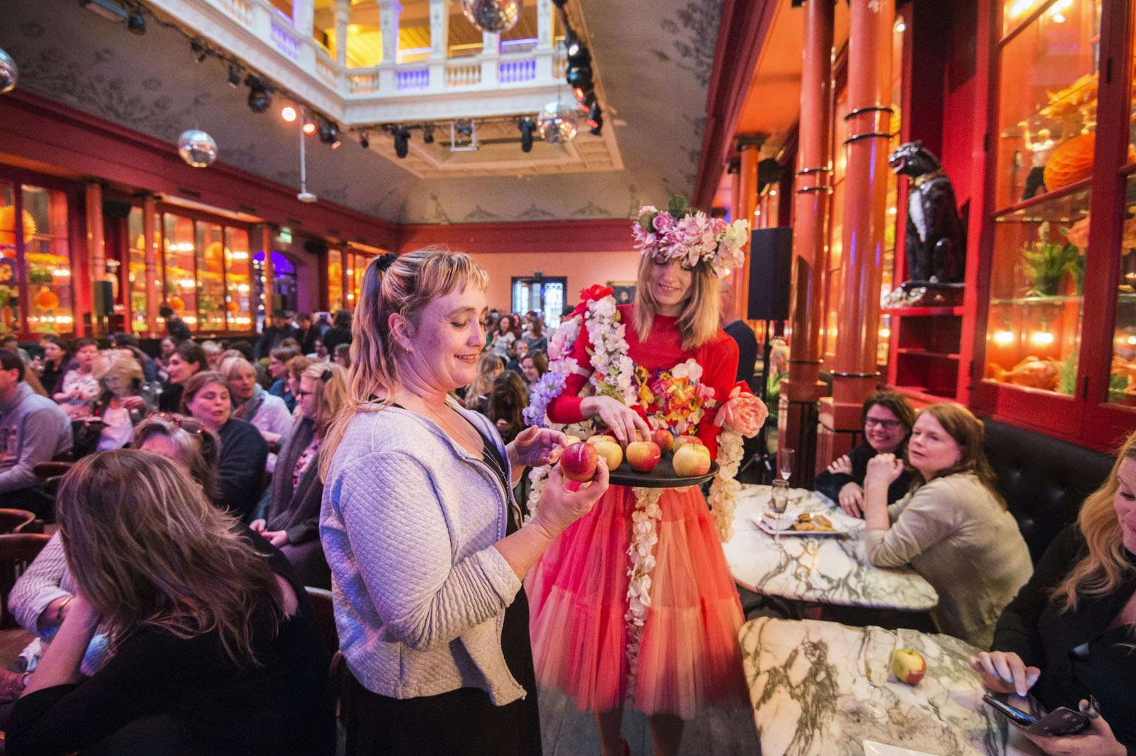 De sfeer zit er dus goed in, bij de lezeressen. Ellen Deckwitz surft voort op die golf en heeft de zaal, om niet meteen naspeurbare redenen, volledig mee. Haar werk is vaardig én behaagziek. Een beetje ondeugend, maar niet te erg. Want het thema van de Boekenweek, en van het feest van BOL, is ‘de verboden vrucht’ – maar het is natuurlijk niet de bedoeling dat er iemand voor het hoofd wordt gestoten.