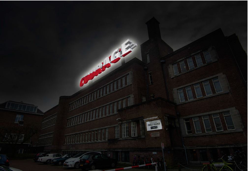 Het 7m bij 2,5m grote ontwerp is in de kleuren van het wapen van Utrecht: rood en wit. De letters zijn van nader te bepalen kunststof en binnenin zal verlichting aangebracht worden. Het kunstwerk zal niet alleen de renners aanmoedigen, maar ook de Utrechters. “Tourrenners krijgen vanaf het dak van Rudolf Magnus ‘Courage’ mee. Helikopters van de Tour zullen het kunstwerk zeker spotten, omdat ‘Courage’ ook van bovenaf leesbaar is. Daarnaast zal iedere langs fietsende, rijdende, rennende of wandelende Utrechter ‘Courage’ meekrijgen. Deze universele aanmoediging is dus niet alleen voor de tourrenners, maar voor alle Utrechters en andere voorbijgangers”, aldus Van den Ham.