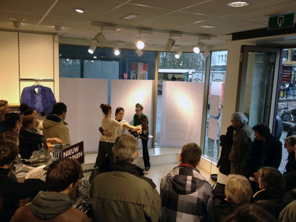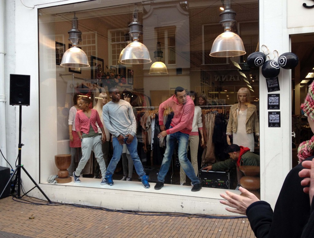 Shoppen in De Bijenkorf terwijl er een compleet operakoor acte de présence geeft. Langs Sissy Boy lopen en getuige zijn van de Hip Hop Sound van Solid Ground. Trio Konijn in de etalage van De Rode Winkel tegenkomen. Liesbeth Faas bij de boeken- en platensale in De Bieb en kinderen die op de Neude hun knuffeldier een parachutesprong laten maken.