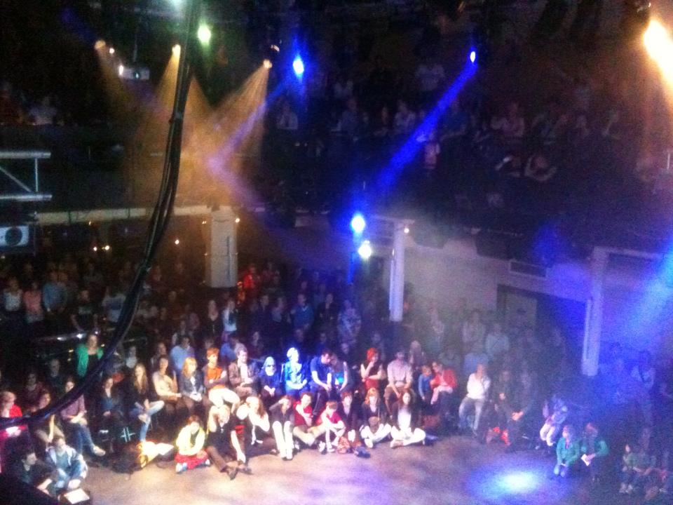 Want groots was het wat het internationale jongerengezelschap neerzette. Ruim een uur lang werd de stampvolle Tivoli getrakteerd op dans, dialoog, muziek en theater wat verbeelde hoe verschillende culturen een samenleving opbouwen en uit elkaar laten vallen door het ego van de mens.