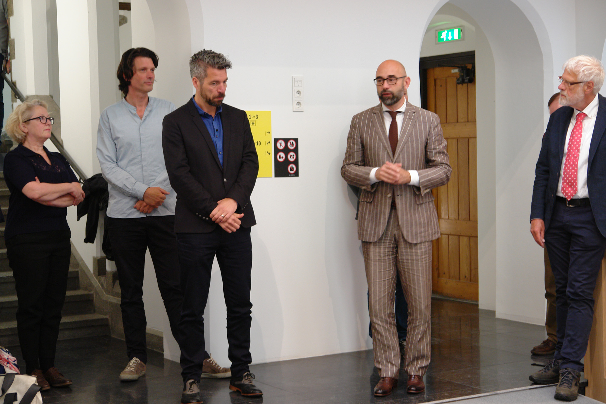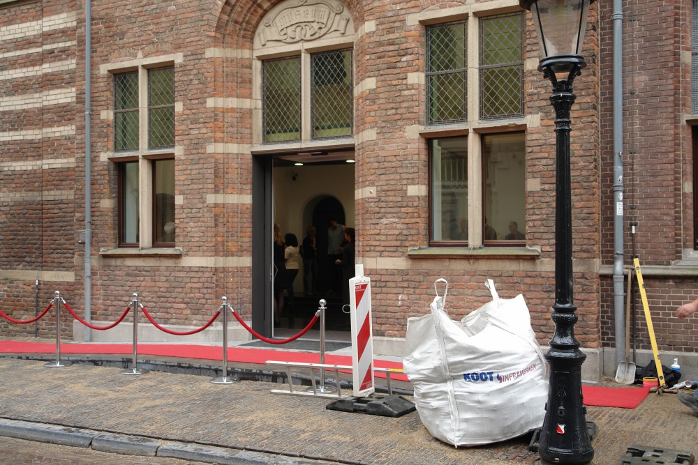 Het was niet echt een mooie dag voor de feestelijke opening van de nieuwe entree van het Centraal Museum aan de Agnietenstraat 2. Het weer was onvriendelijk, bewolkt met veel wind. Bovendien werd er nog aan de stoep gewerkt voor de vernieuwde entree, die lag vol met bouwmateriaal van de stratenmakers. Niet echt chique bij een opening, maar er lag wel een rode loper, dat dan weer wel.