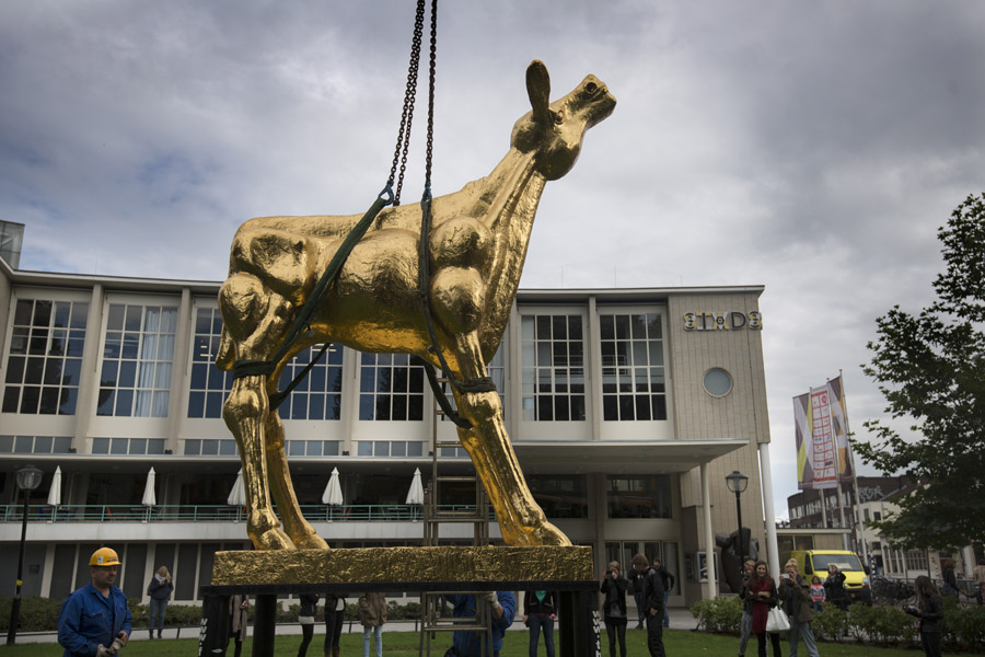 Voor het eerst in de geschiedenis van het beeld zal het grote Gouden Kalf niet in het park voor de Stadsschouwburg staan tijdens het Nederlands Filmfestival. Door werkzaamheden aan de schouwburg is het niet mogelijk om het icoon van het filmfestival hier te plaatsen. De Stadsschouwburg is ook geen locatie voor het festival dit jaar.