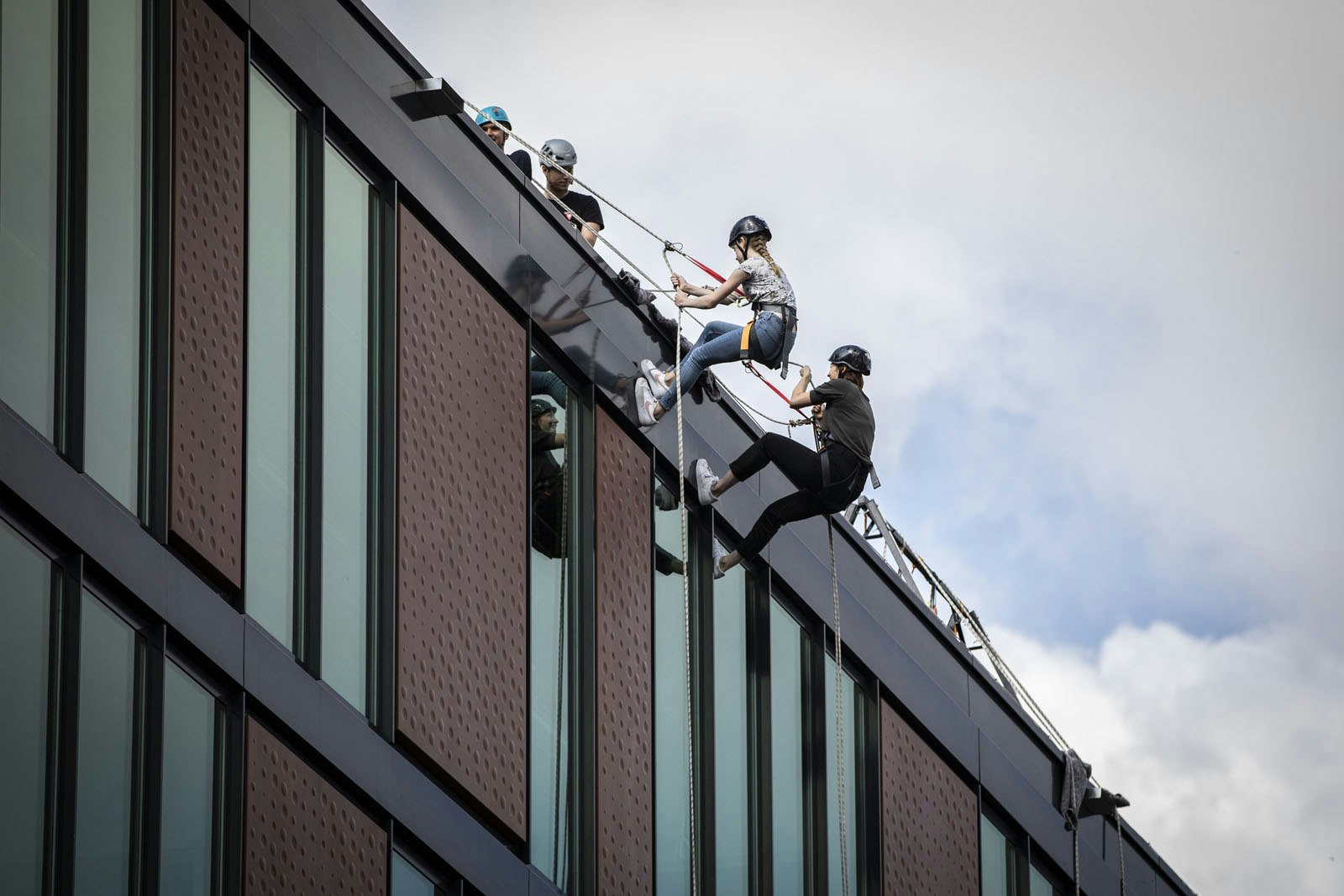 Onder het Bollendak op het Stationsplein stonden negen piano’s opgesteld. Verschillende muzikanten maakten daarmee, maar ook met andere instrumenten, muziek. Even verderop konden mensen abseilen langs de gevel van Creative Valley.