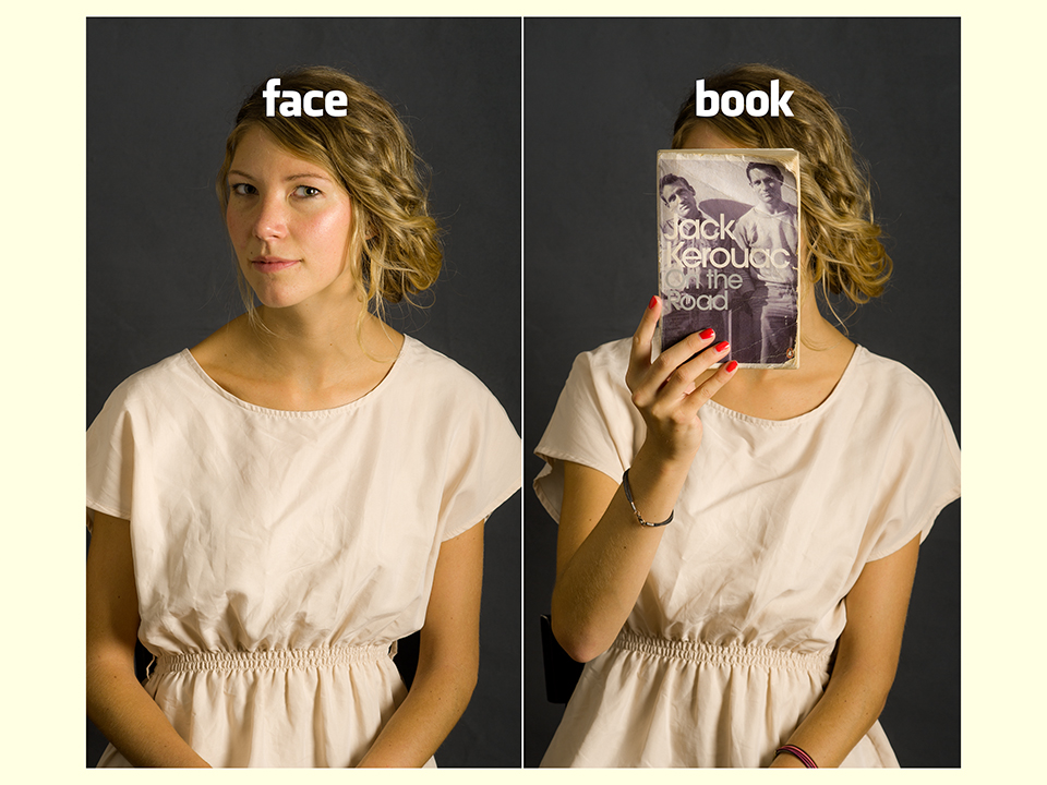 Al snel stelde Jaap zichzelf de vraag: wat kan ik met Facebook nog meer doen? “Hardop zei ik: Face…Book. Ik bedacht dat het leuk zou zijn om mensen te fotograferen met hun favoriete boek voor hun hoofd.”