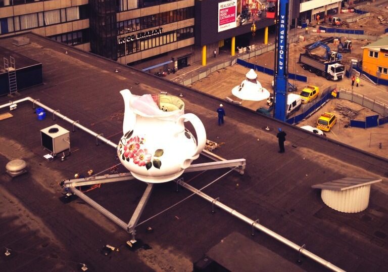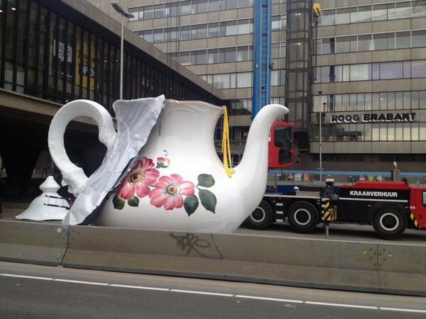 Het duurde iets langer dan gepland, maar de theepot staat nu toch echt op Hoog Catharijne.