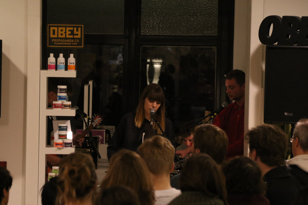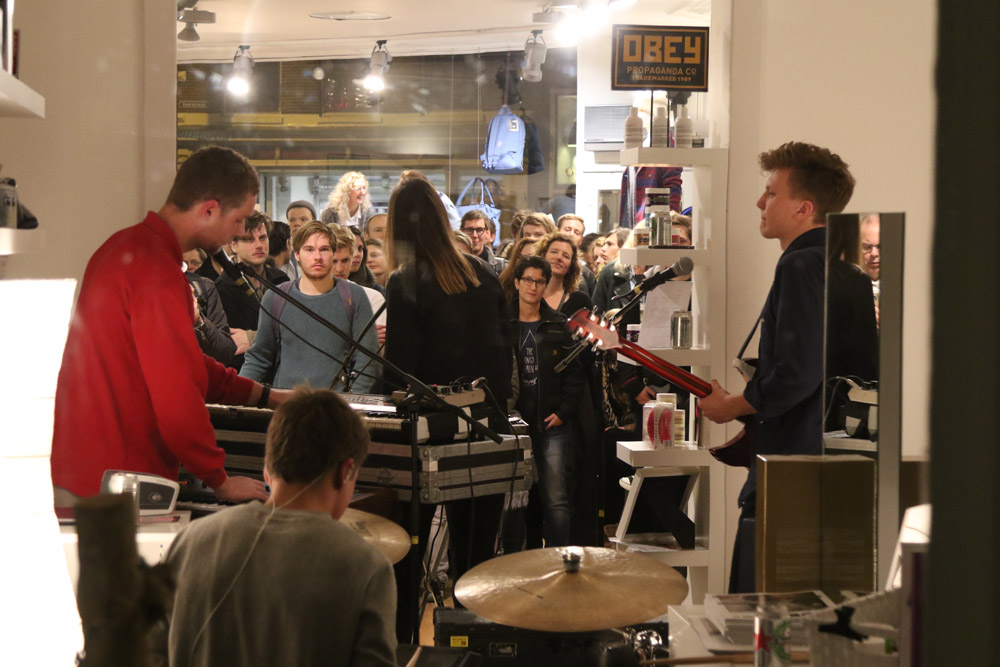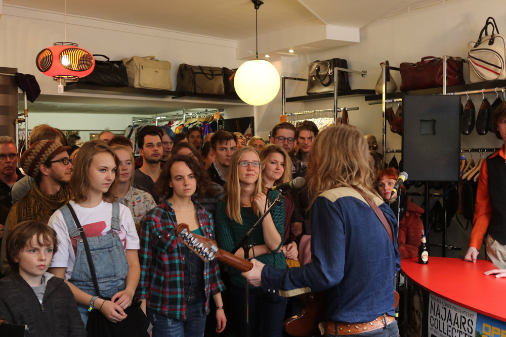 Uit alle hoeken en gaten van de Voorstraat klonk muziek. Utrecht wist Le Mini Who te vinden. Met soms als gevolg dat mensen hun favoriete groep vanaf het trottoir moesten bewonderen. Vooral bij het optreden van DeWolff in vintagewinkel Sussies was het dringen geblazen. Floris van der Woude maakte onderstaande foto’s.